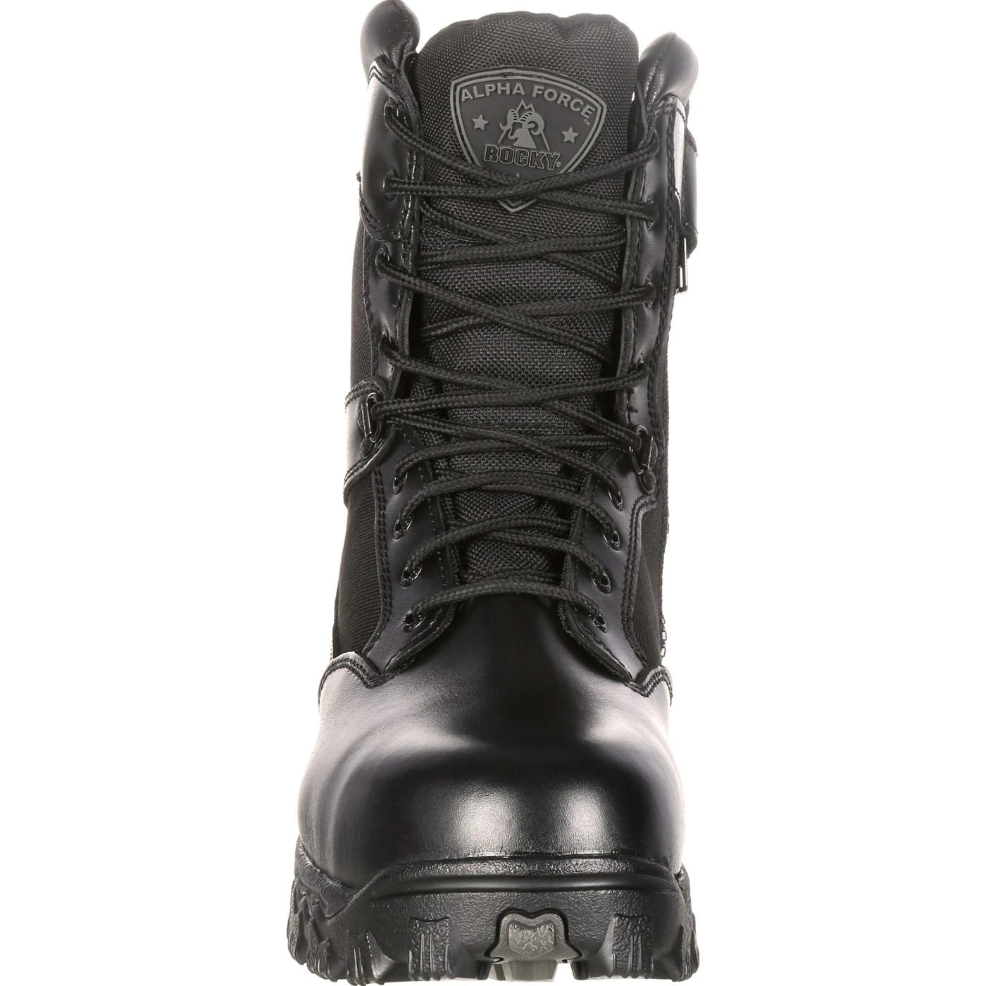 In addition to performance, these eight-inch public service boots also have the styling you want. They are made with full-grain leather and 900-denier combination nylon. These materials resist abrasions. Alpha Force is a completely black boot with black laces and a black side zipper.