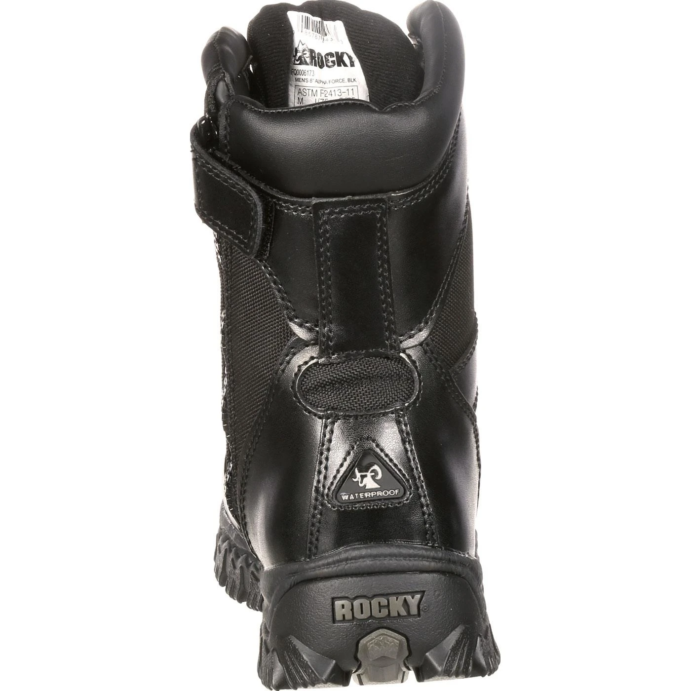 These hard-wearing Rocky® Alpha Force Waterproof Public Service Black Boots are made with black full-grain leather and 1000-denier nylon fabric. Rocky Alpha Force boots are tough work boots built to meet the job at hand. These lightweight, strong fabrics hold up  even in the most extreme working conditions.
