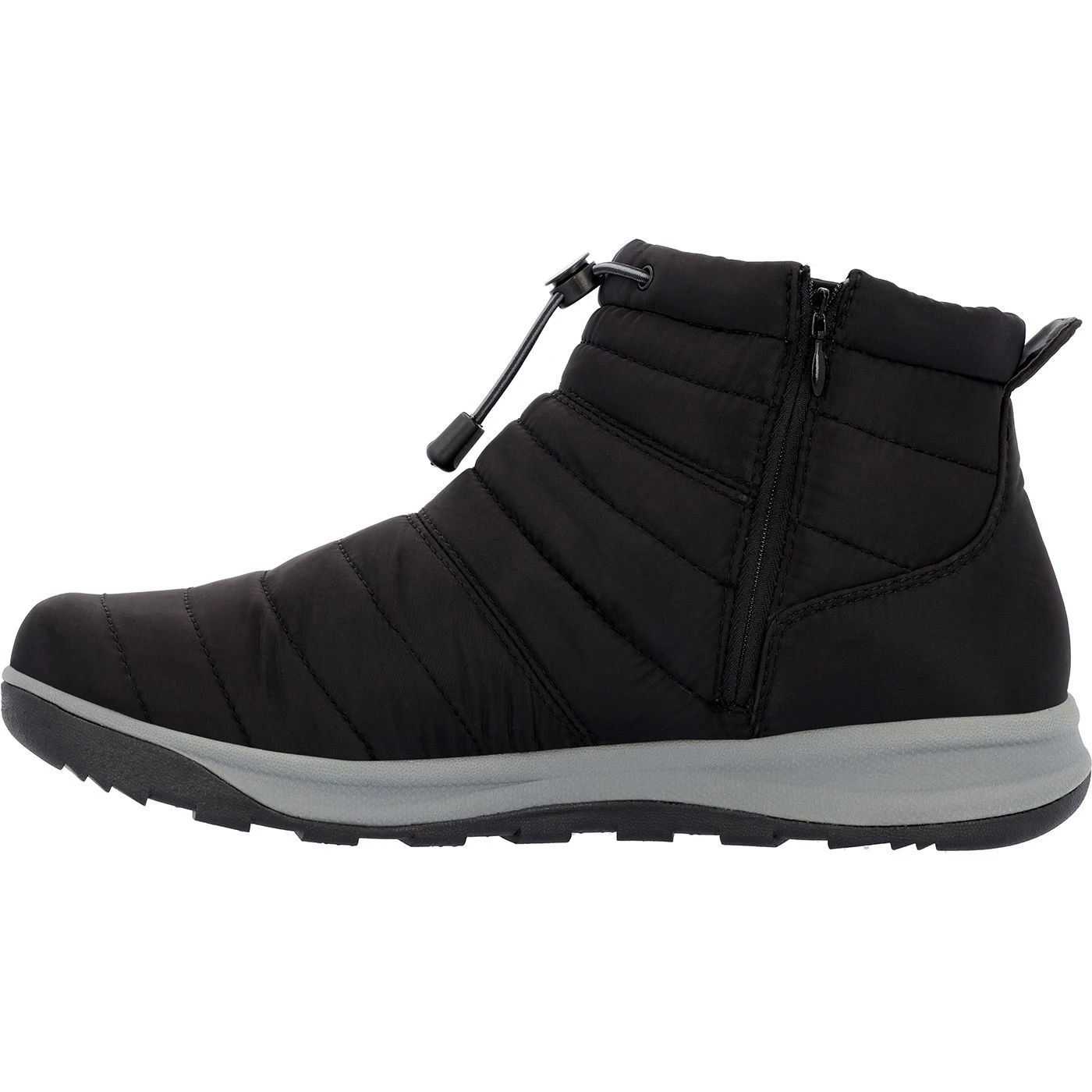 Soon to become your favorite slip-on shoe with rugged outdoor capabilities, these quilted shoes bring that cozy camp feel to any activity. Rocky Campy Jams Black Side Zip Outdoor Shoe are built with a water resisting quilted nylon upper and durable water repellent coating to keep your feet dry and comfortable. Made with a soft fleece lining and constructed to easily pull on and off, these will be the shoes you reach for every morning.