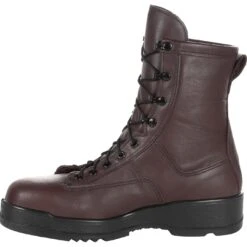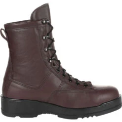 This Rocky General Purpose Navy Certified Flight brown steel toe military boot is a great Berry Compliant option for warm arid environments. This boot is certified by the U.S. Navy for both flight and flight deck use. With features like a cushioned shock absorbing midsole, a Berry compliant waterproof liner, and a Vibram Chevron rubber outsole designed to improve traction on wet surfaces, this boot is a great combination of comfort and toughness.
