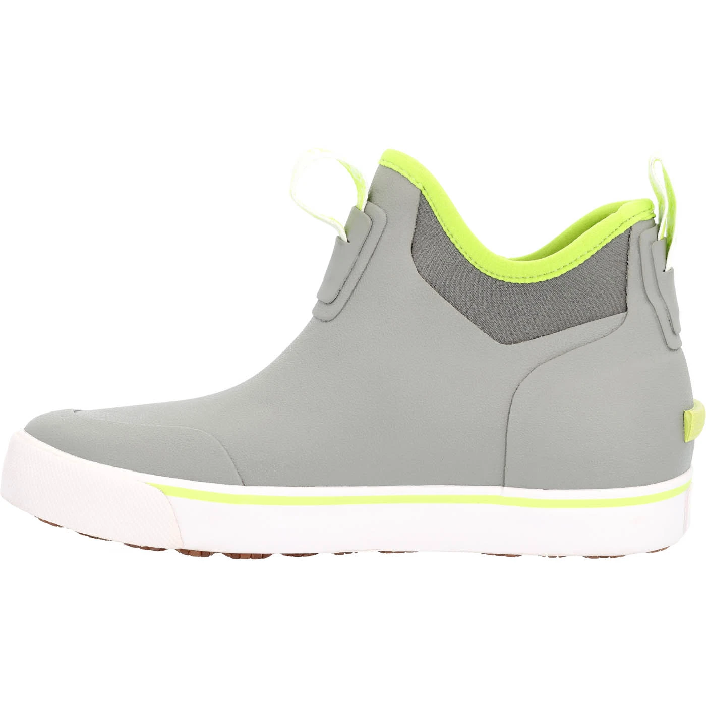 The Rocky Dry-Strike boot is perfect for any outdoor adventure. The waterproof upper with neoprene bootie construction keeps your feet dry whether you’re working on the boat or walking through puddles. The unique ultra-slip resisting rubber outsole will keep you safe while the Energy XLX footbed will keep you comfortable. Easily slip on using the nylon pull lops on the front and back. Built to be extra tough, these charcoal and lime lightweight rubber boots will handle anything all day long.