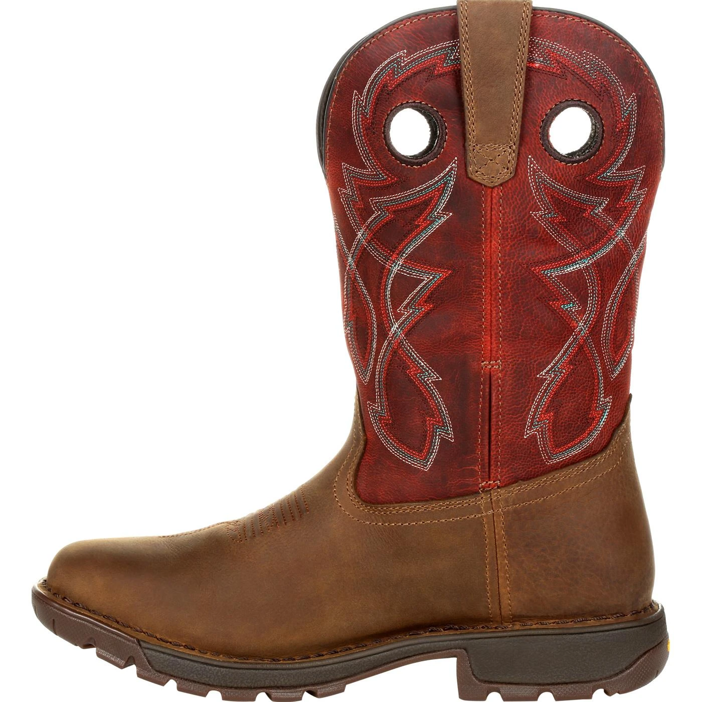 The Rocky Legacy 32 takes a classic work western silhouette and adds the latest in comfort and technology. These eleven-inch tan and red work wellingtons are designed to offer all day comfort, safety, and stability. With a stitch out construction, an oil and slip resisting Proprietary Vibram® rubber outsole with a cushioned EVA midsole, and a fiberglass shank, these boots are built to last. Take on any terrain with waterproof full grain SPR leather and Rocky’s VP Waterproof technology that keeps your feet dry without trapping perspiration in. Getting into these boots is easier than ever with Rocky’s Expansion Fit Seam that stretches when putting the boot on and then returns to its original shape. If you’re looking for a work wellington boot that looks as good as it feels and offers safety where you need it the most, get the Rocky Legacy 32.
