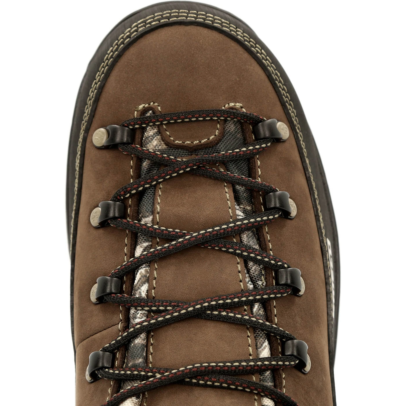 The MTN Stalker Pro Waterproof Insulated Realtree EXCAPE™ Hiker is made to tackle rugged terrain. The upper is a waterproof full-grain leather with 900 Denier Cordura® in Realtree EXCAPE™ camo. The lace-to-toe design provides secure support while the Vibram® Mountaineering outsole provides stability and traction while trekking anywhere.