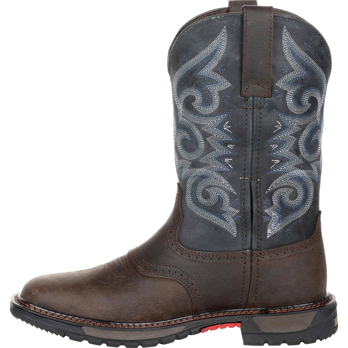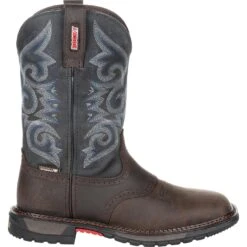 Make any terrain worry-free with oil and slip resisting outsoles, made of rubber and EVA for added stability and comfort. This chocolate and midnight blue waterproof women’s western boot looks as good as it feels and will help make your day a little easier.