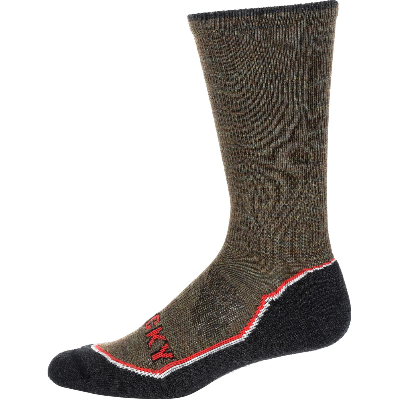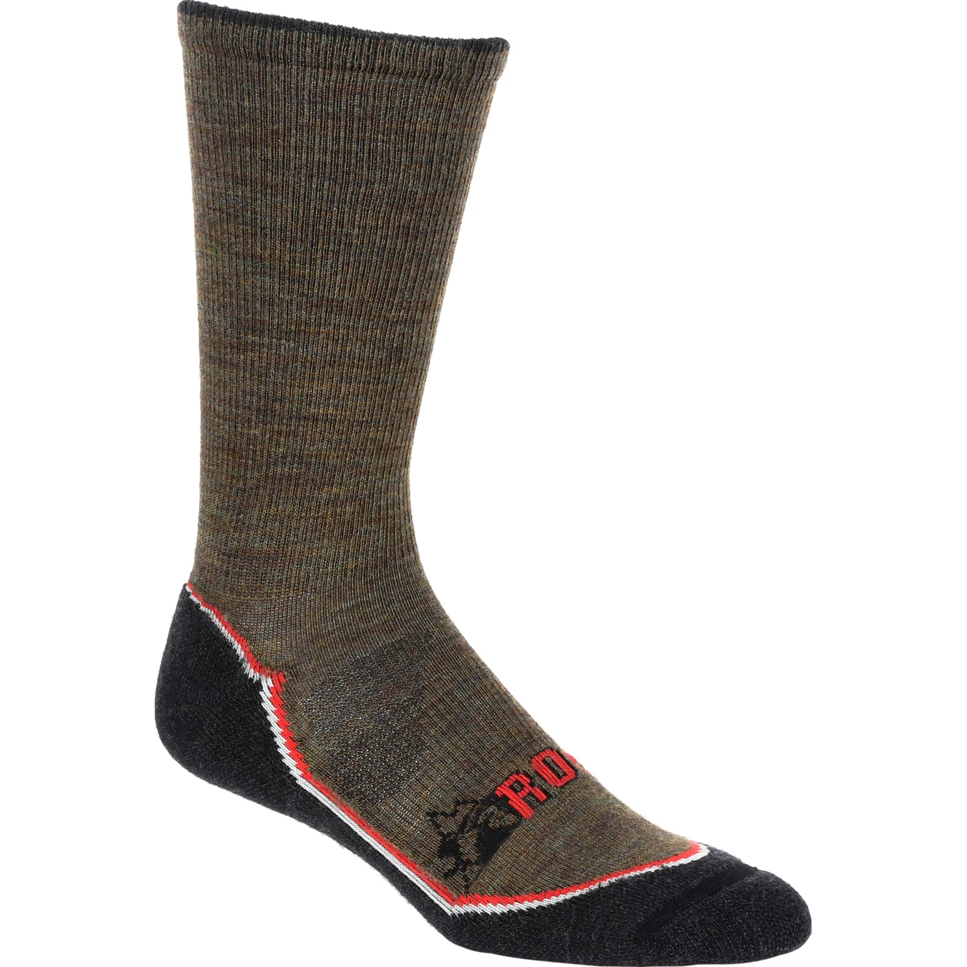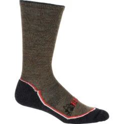 The Rocky Outback Hiking Crew sock is designed specifically for the demands of outdoor activities. A blend of 64% Merino wool, 33% nylon, and 3% LYCRA® spandex wicks moisture from your feet and regulates temperature. A seamless toe closure and comfort compression are added for a good, comfortable fit.
