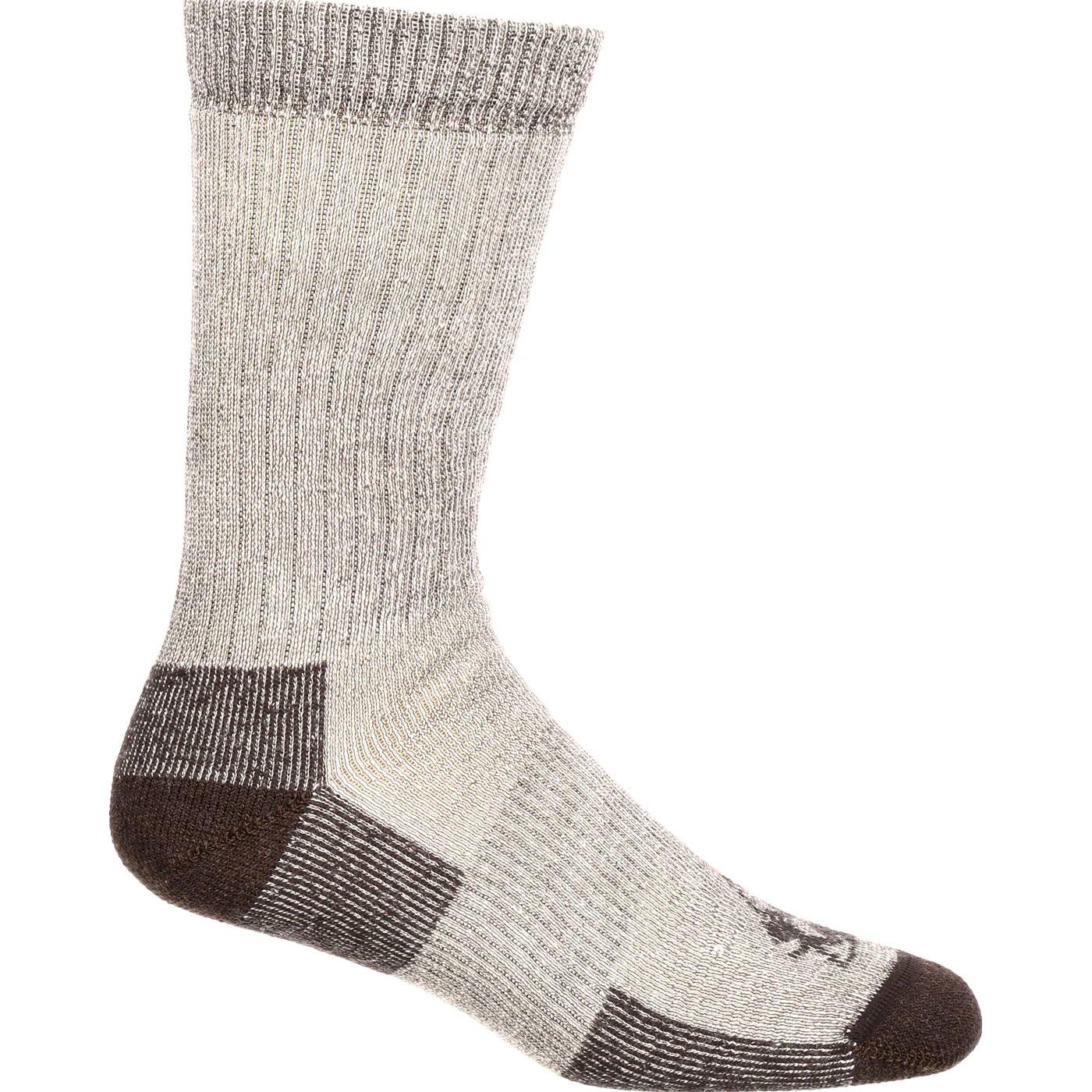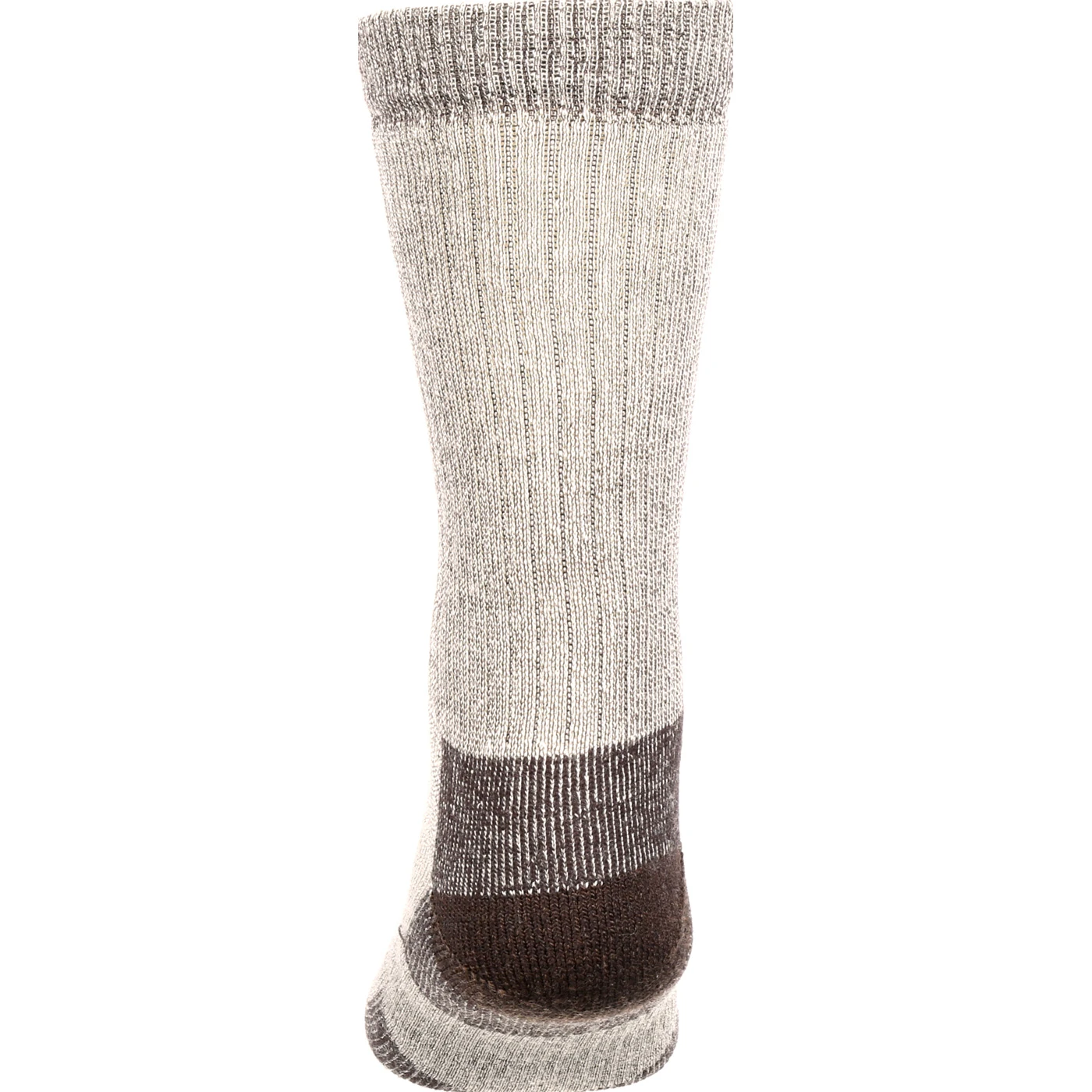 Get maximum comfort and performance with each step in a pair of Rocky Performance Hiker socks. Constructed with a blend of 78% Merino wool, 20% nylon, and 2% LYCRA® spandex, these socks will keep your feet comfortable on a long hike or hunt. The Merino wool is naturally moisture wicking and regulates temperature, while the design of the sock also includes a seamless toe closure for comfort and arch support to fight fatigue.