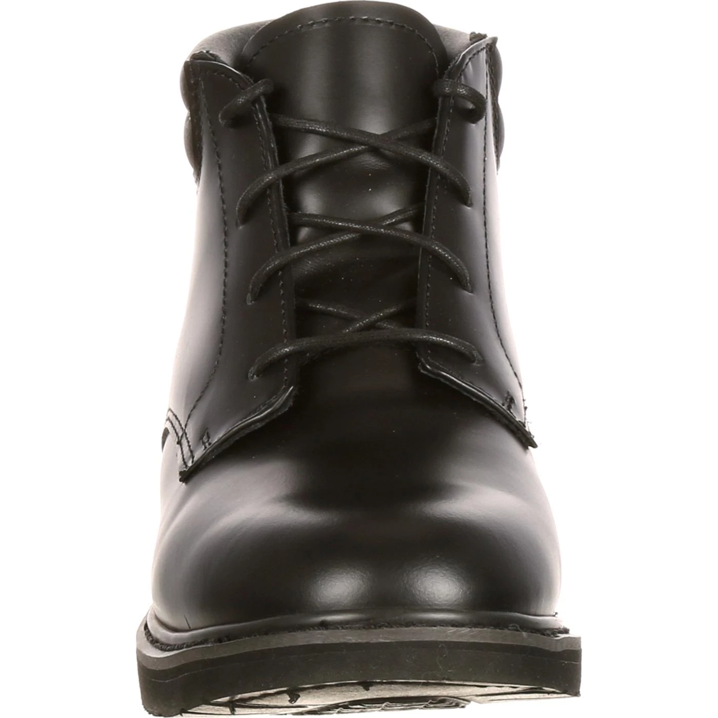If your job requires you to wear a dress boot for public service, you don’t want to settle for just any black dress boot. If you prefer the look and feel of genuine full-grain leather, and you want a men’s boot that’s comfortable, and can be polished, you’ve found your footwear. It’s the Rocky® Polishable Dress Leather Chukka.
