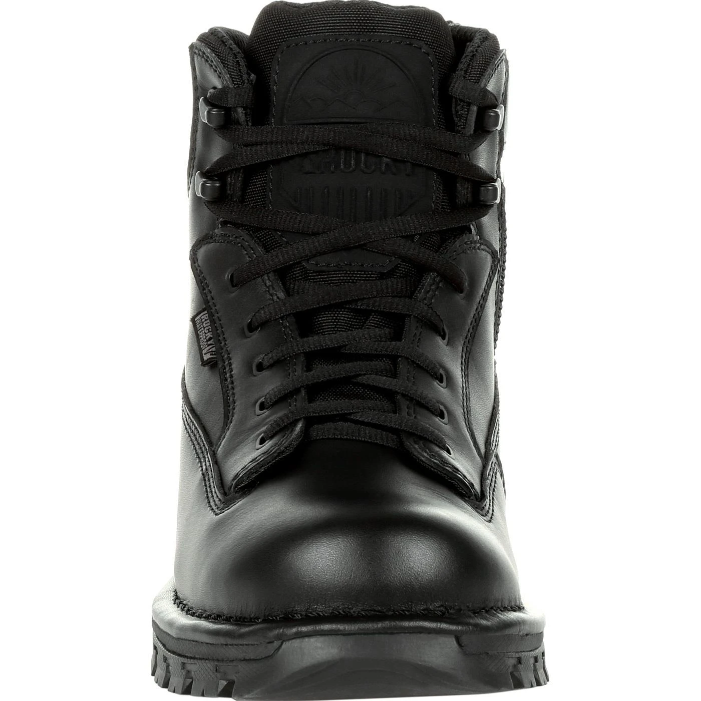 The Rocky Portland service boot is a classic collection that has been providing reliable footwear for almost 20 years. Built with polishable full grain leather, 900 denier nylon, and a heavy duty YKK side zipper, this Sleek, lightweight and flexible 6-inch boot is designed to help you excel on the job. Constructed with an oil and slip resisting outsole with heavy duty rubber lugs and Rocky Vapor Pass Waterproof technology this boot gives you the foundation and protection you need to perform across any terrain. Experience unbelievable comfort with the flexible San Crispino construction, Rocky Air-Port footbed, and a padded collar. Go all day with this reinvented service boot from Rocky.