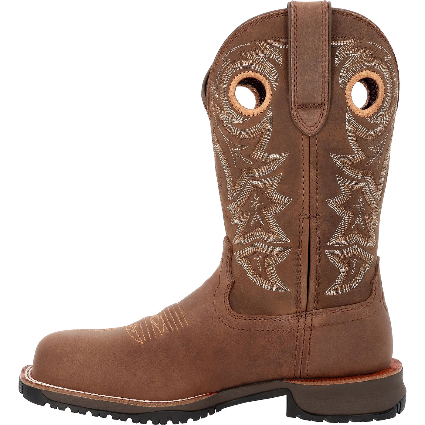 Introducing our first women’s exclusive western collection, the Rocky Rosemary Women’s Western Boot is designed to offer all-day comfort, safety, and stability. With a mix of fashion and functionality, this 11-inch dark brown waterproof full grain leather boot is packed with features built to withstand the job. A light and flexible construction, fiberglass shank, oil- & slip-resisting rubber outsole with EVA midsole, and an EnergyBed footbed all work together to keep you on your feet for longer. Rocky’s 1 Year Vapor Pass Breathable Recycled Membrane technology is designed to keep liquids out without trapping perspiration in, allowing your feet to stay cool and dry all day long. Add in an expansion fit seam for easy on and off after the workday is done. This square toe pull-on boot meets ASTM F2413 protective toe and electrical hazard standards so you can wear these boots confidently knowing that your feet are protected.