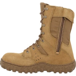 The Rocky® S2V Predator Composite Toe Military Boot is a high-quality Coyote Brown boot that protects your feet and is comfortable to wear. This uniform-compliant boot is approved for wear with all applicable Operational Camouflage Patter variations. Made of flash-resistant, water-resistant leather and 1,000-denier CORDURA® nylon, this combat boot is PTFE-coated for flame resistance. Drainage vents circulate air in and push water out, allowing you to quickly “walk-them-dry.” This tactical boot has a Vibram® sole with proprietary high walls and a polyurethane midsole. A durable YKK side zipper makes it easy to get these boots on and off. Inside the footwear are features that make this a comfortable boot. The Rocky® Air-Port™ footbed cushions your feet and has perforations for air flow. Durable, triple-stitched military boot stays together through wear and tear and reduces ankle injuries with Roll-Stop Ankle Stability. If you’re looking for a coyote brown military boot with protection that exceeds your comfort and performance needs, get the Rocky S2V Predator Composite Toe Military Boot.
