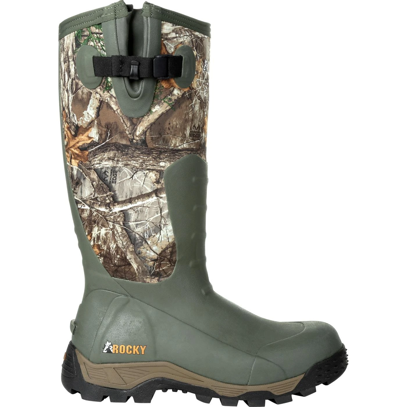 The Rocky Sport Pro Waterproof Rubber in Realtree Edge camo is a great addition to a tradition of quality hunting boots. Built with features like an aggressive multi-directional dual-density outsole, vulcanized rubber foot with added protection over key wear areas, and a 5mm neoprene shaft and you can see why you’ll feel like a pro wearing them. Add to this an open cell PU foam footbed, an expansion fit calf for a more universal fit calf, and of course the benefit of scent concealment, as well as a side zipper for easy on and easy off, and you’ve got a true sportsman’s boot. Hunting is your sport, take it on like a pro with the new Rocky Sport Pro Realtree Edge Waterproof Rubber Boot.