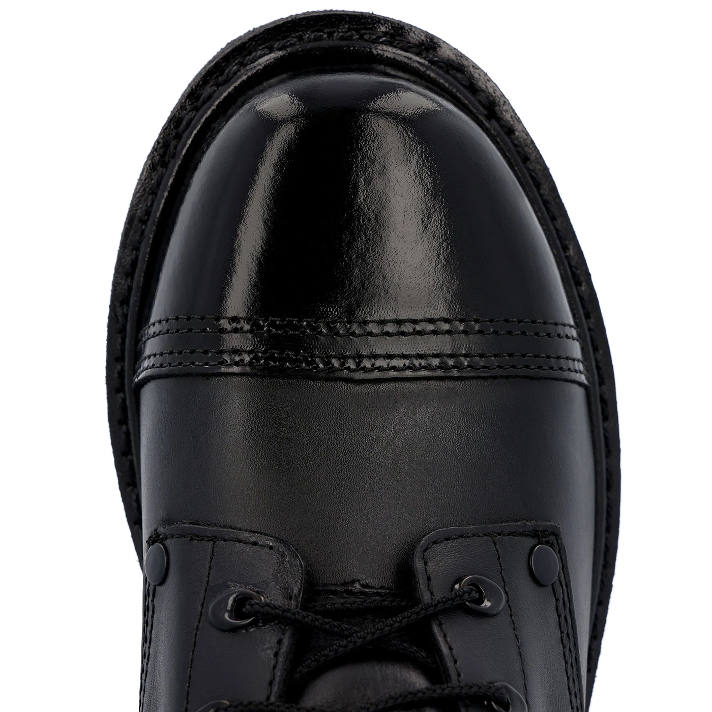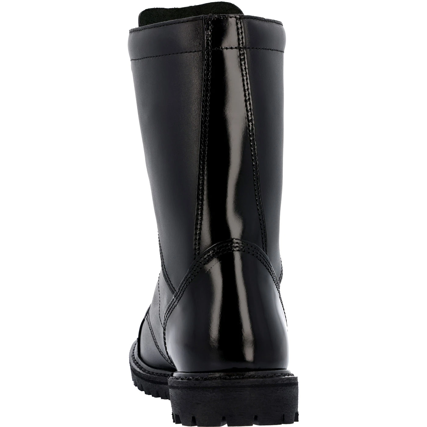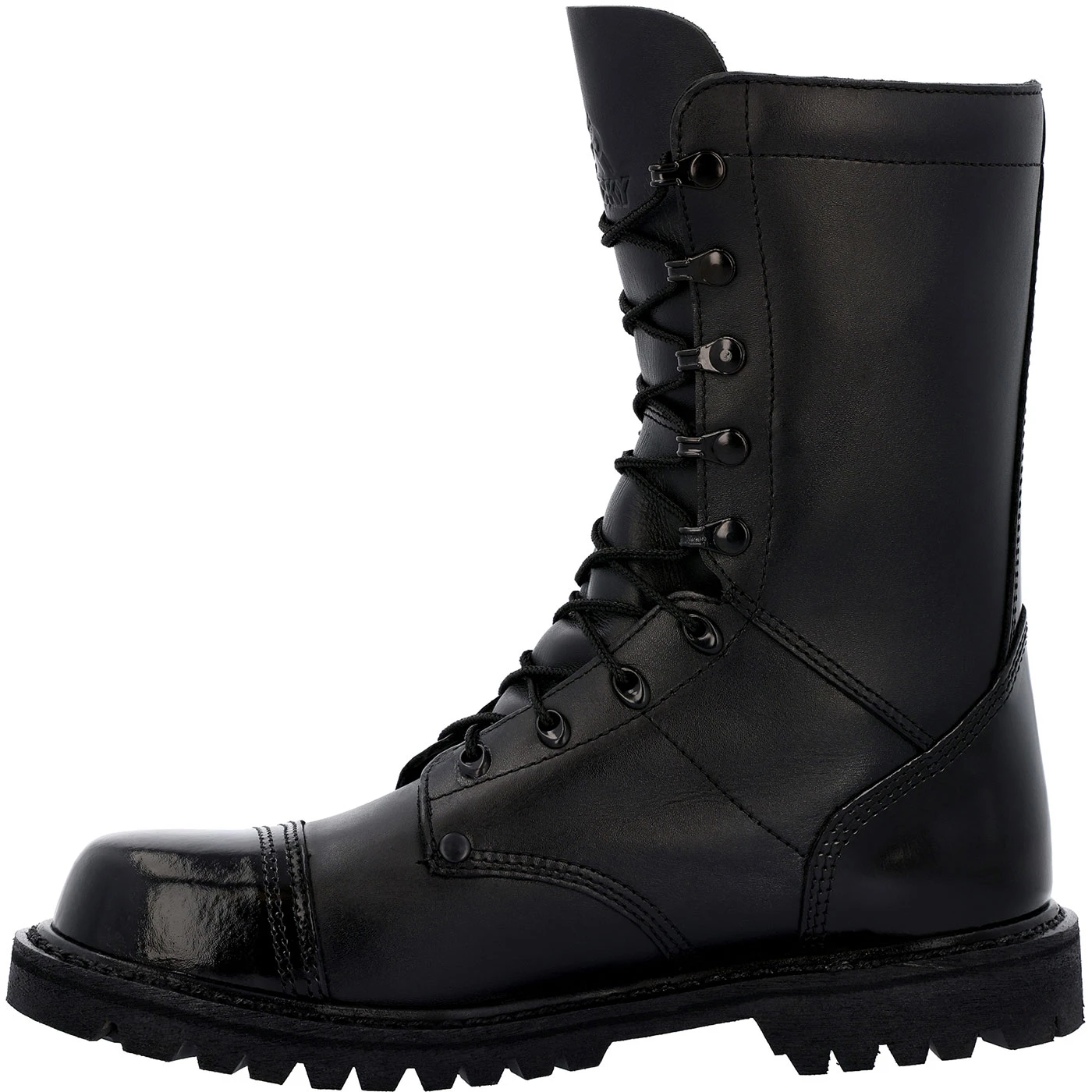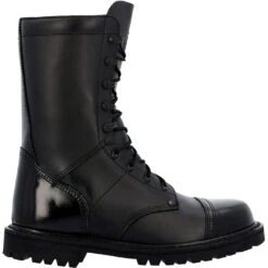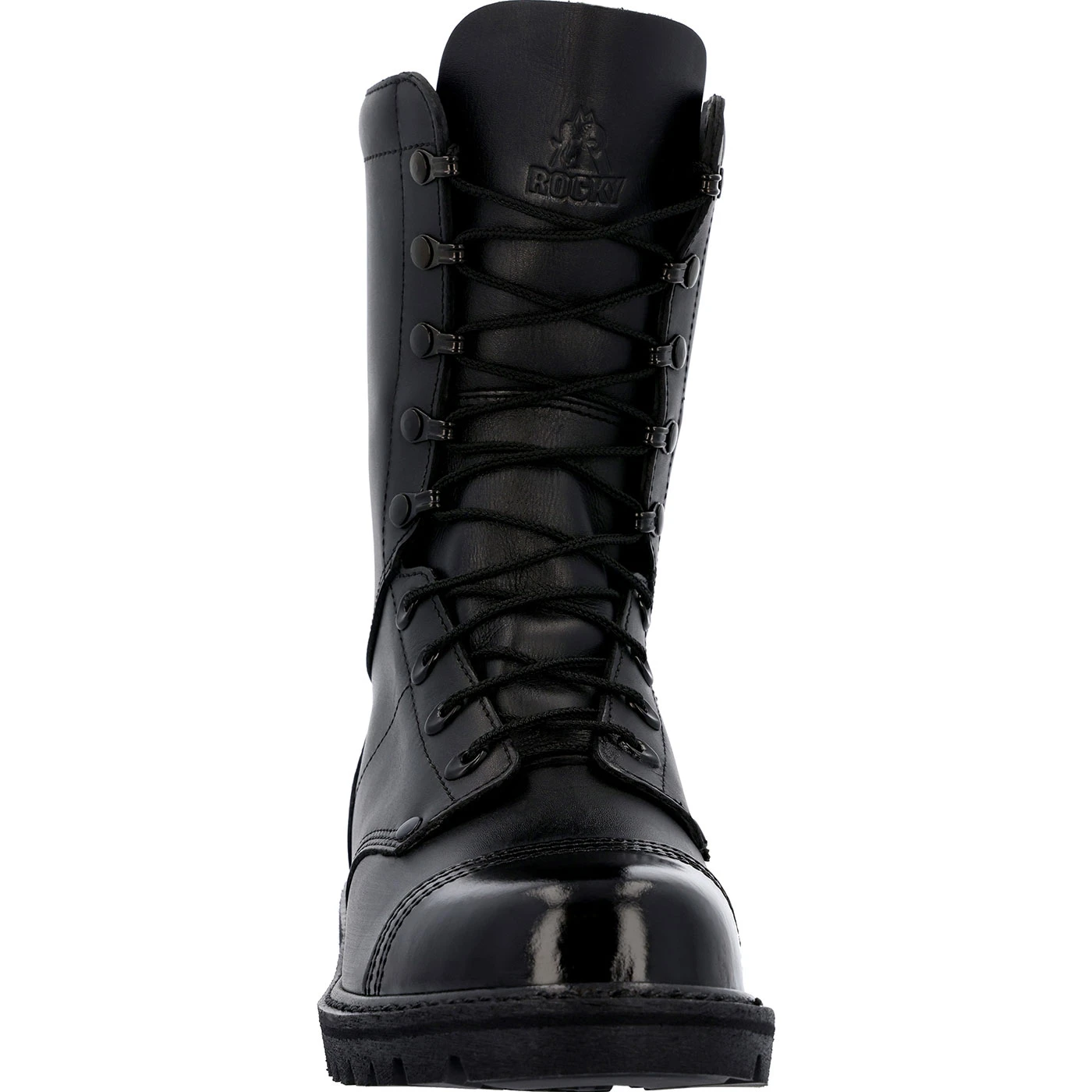 This 10-in boot is a Rocky Classic, now built with a speed lacing system with NATO hooks. The upper has been built from premium full-grain black leather. Keep your boots in tiptop shape with a polishable toe. The Goodyear welt construction gives these boots a longer life with the ability to be repaired with no trouble and revert to their original hardiness. The contoured EVA footbed provides cushioning that will pacify your achy feet and will make standing a much more comfortable experience. The black, rubber lug outsole provides traction and is great for traversing on uneven terrain.